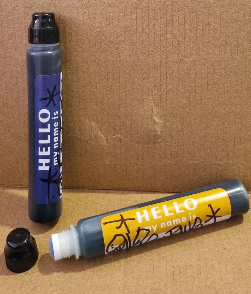 filled with ink or rust